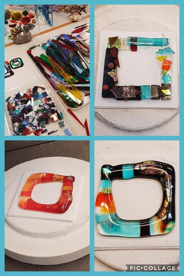 Voor ons een mooie moment om eens te gaan denken aan de MORE in onze naam, wat kunnen we anders dan alleen mozaïek bieden. Zo kwamen we op het pad van HOTPOT glasfusion. Eigenlijk wel wat overeenkomsten met het mozaïeken. Je snijdt of breekt stukjes (speciaal) glas en maakt daar een mooie vorm van. Dit gaat in de HOTPOT en je laat het glas langzaam samen smelten. Dit is echt super leuk om te doen en je kan er ook mooie producten mee maken. Wij zijn in ieder geval een cursus gaan volgen en wellicht gaat dit ook tot een van onze mogelijkheden behoren.