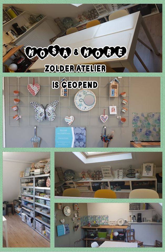 Ineens was er ruimte, letterlijk! De oudste zoon van Marjolein ging op zichzelf wonen en daardoor kwam de zolderkamer vrij. Een mooie gelegenheid om daar onze nieuwe werkplek te creëren! Het Zolder Atelier is een feit. Een heerlijke werkplek van alle gemakken voorzien en mogelijkheden voor diverse workshops tot 6 personen. Bij grotere groepen zullen we uitwijken naar een andere locatie.